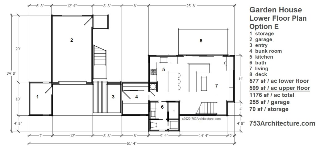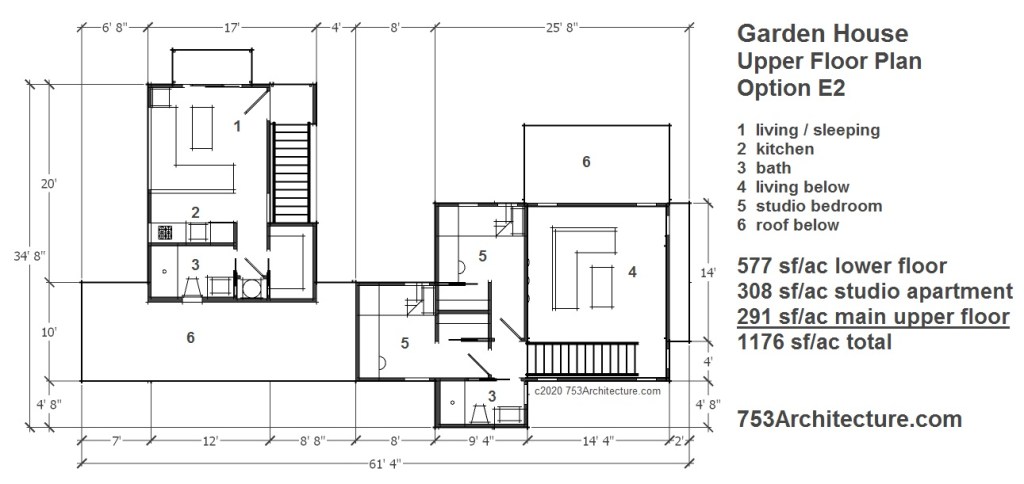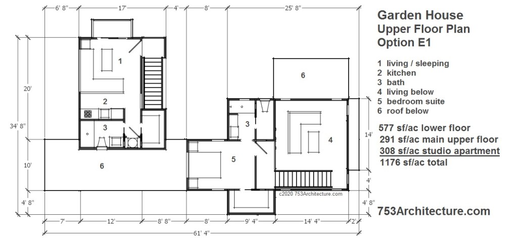 > 753 posted: ” The Garden House is grown to mature form. Plans E1 and E2 > offer alternative occupancy options like a choice between apples and > oranges. The library is crucial to all options – the passive analog > companion to active digital infinity. Yet, a home deter” >