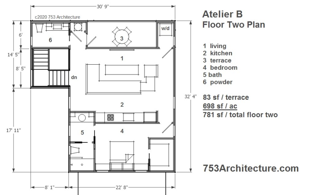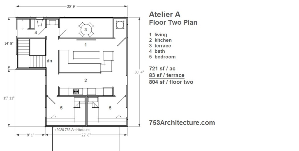 Plan B – a one bedroom plan designed for single or double occupancy: