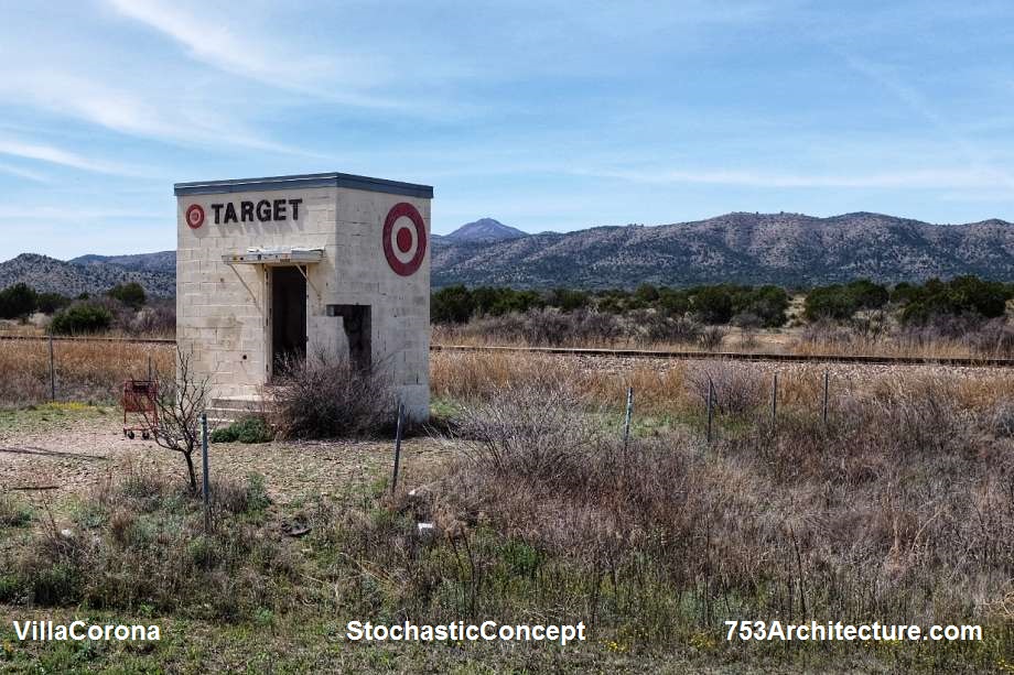 VillaCorona is inspired by what is anecdotally known as the world’s smallest Target store. Whether it is real or simply clever social commentary overlaid on an abandoned shed is secondary to the sense of utter bleakness its isolation evokes. It simultaneously represents the nightmare of social quarantine and the daydream of peaceful retreat. Could social quarantine ever become peaceful retreat?